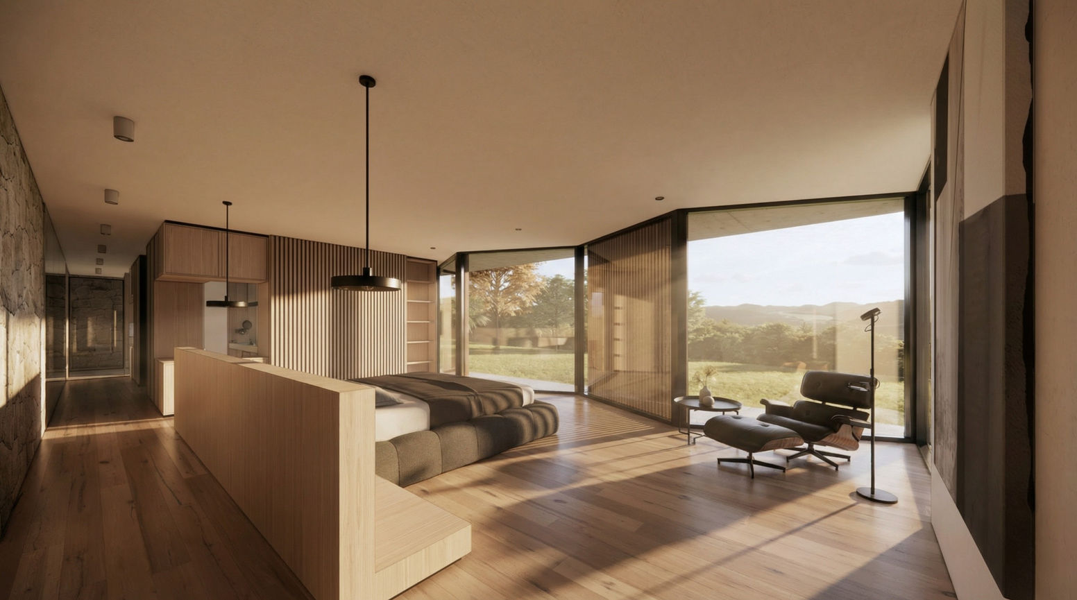 Inside, the palette of stone and timber continues, grounding the interiors in natural beauty. Paired with landscaped courtyards, the design creates a private urban sanctuary—an elegant backdrop for daily living, designed to feel effortless, calming, and beautifully enduring.